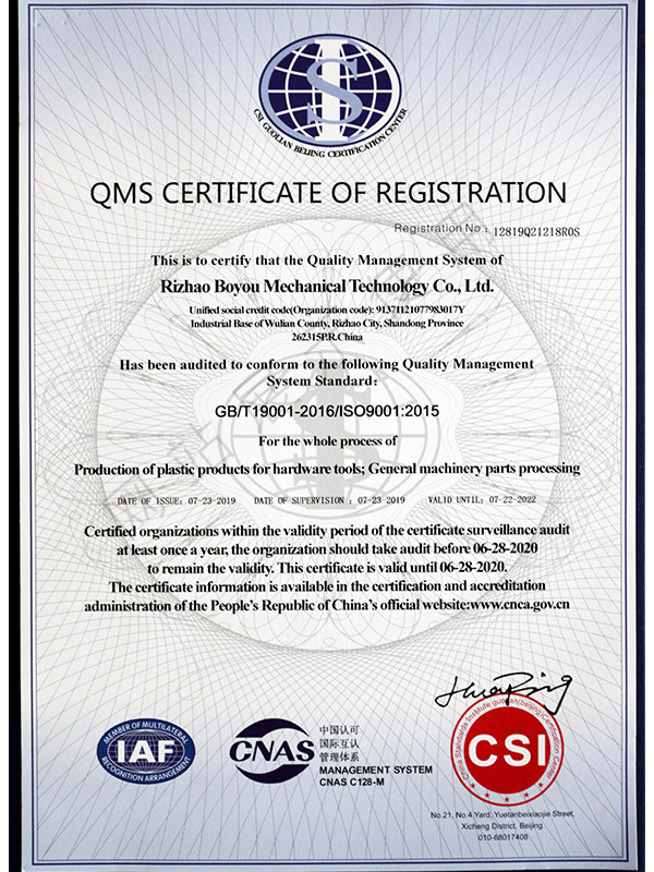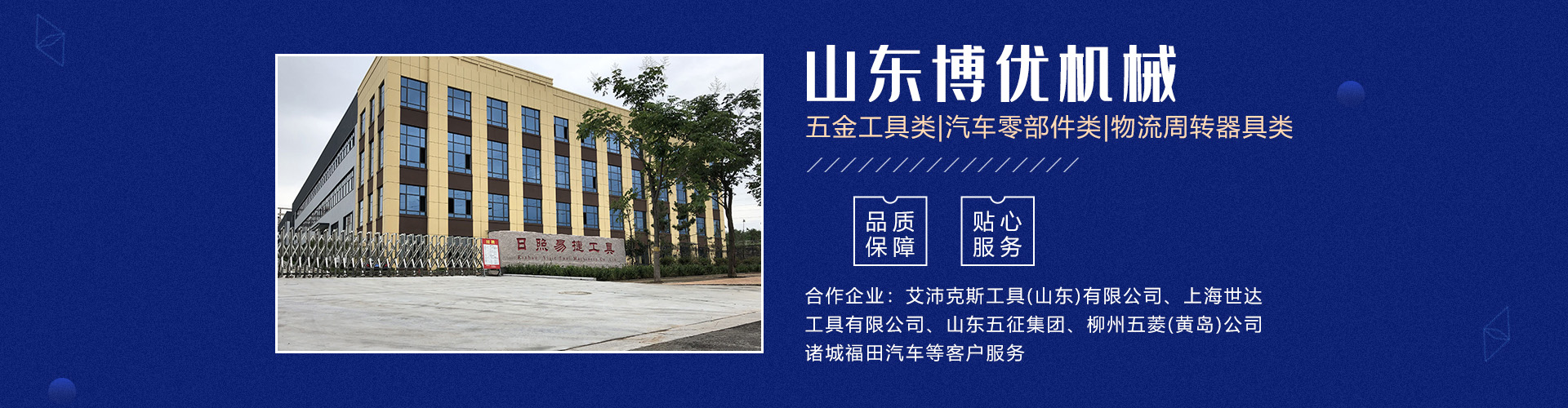 分公司日照易捷工具制造有限公司坐落在山東省日照市五蓮縣工業(yè)園,占地65畝(五蓮縣日照路與人民路交匯處),現(xiàn)有員工60名。公司主要產(chǎn)品有五金工具類及汽車零部件類、模具制作等三大系列。 主要設備有加工中心、數(shù)控車床生產(chǎn)線、磨床、研磨機、拋光機、冷鐓擠壓成型機、數(shù)控液壓模鍛錘等機械加工設備140余臺套。公司主要為艾沛克斯工具(山東)有限公司、上海世達工具有限公司、山東五征集團、柳州五菱(黃島)公司、諸城福田汽車等客戶服務。公司多年被評為優(yōu)秀供應商。